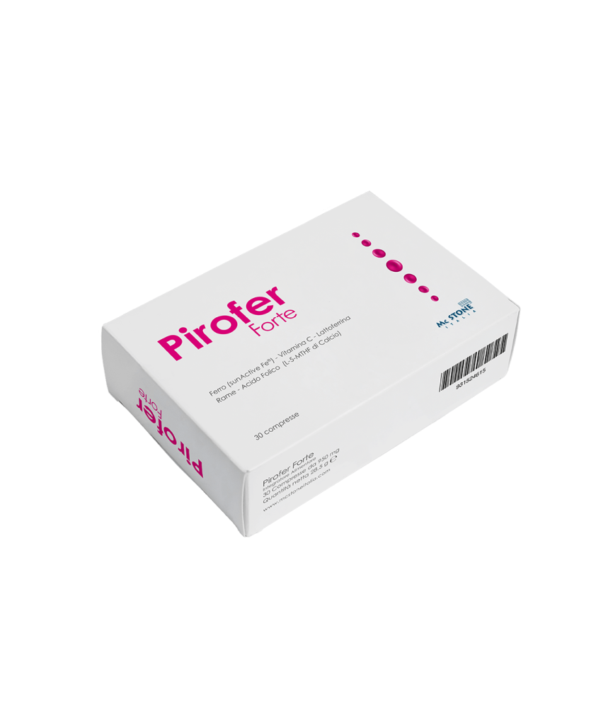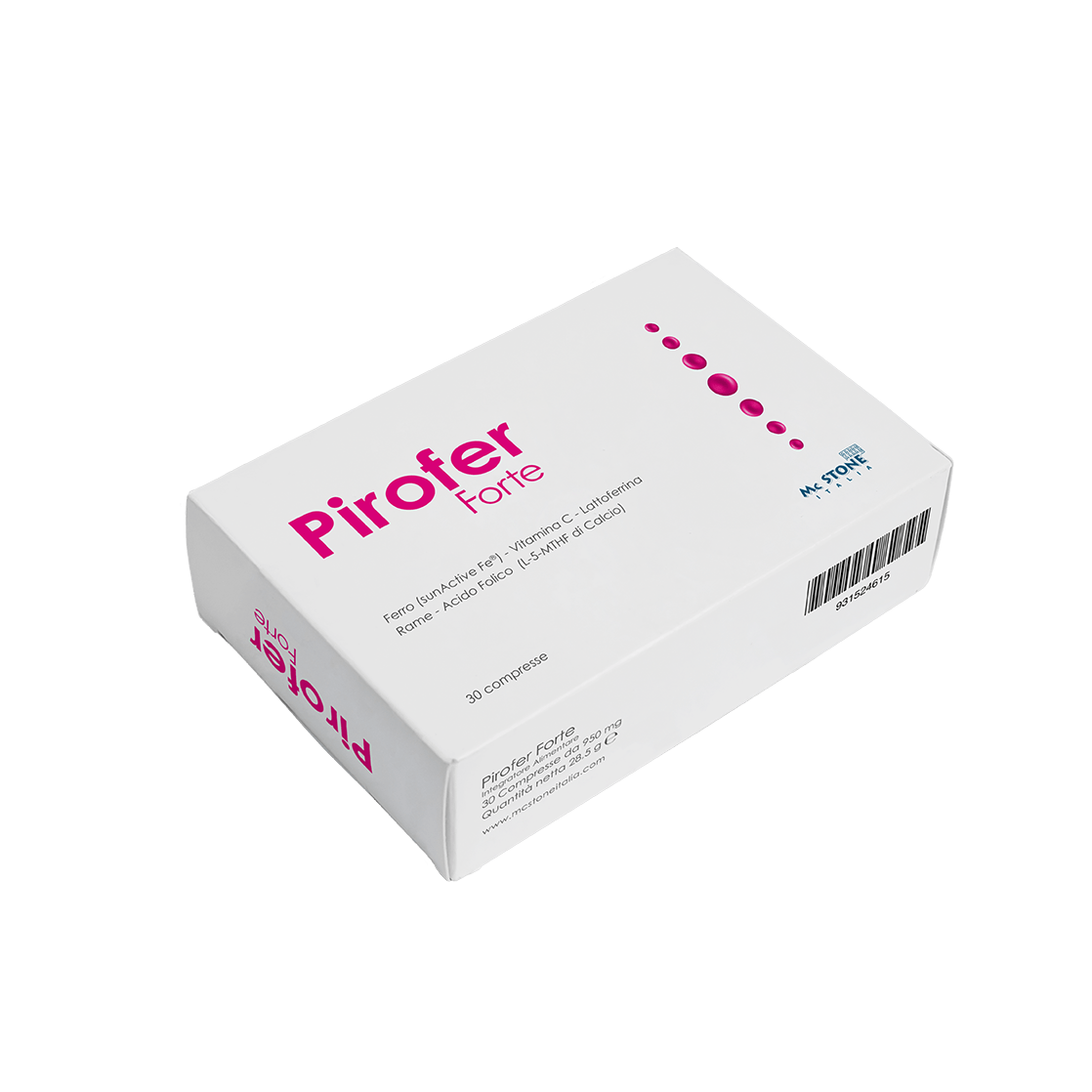 Pirofer Forte è un integratore alimentare avanzato a base di ferro pirofosfato microincapsulato (SunActive® Fe), sviluppato per garantire un'elevata biodisponibilità intestinale senza effetti collaterali a livello gastrico. La forma micronizzata e il sistema emulsionante brevettato assicurano un rilascio graduale fino a 8-10 ore, ottimizzando l'assorbimento del ferro e riducendo il rischio di irritazioni o disagi gastrointestinali.